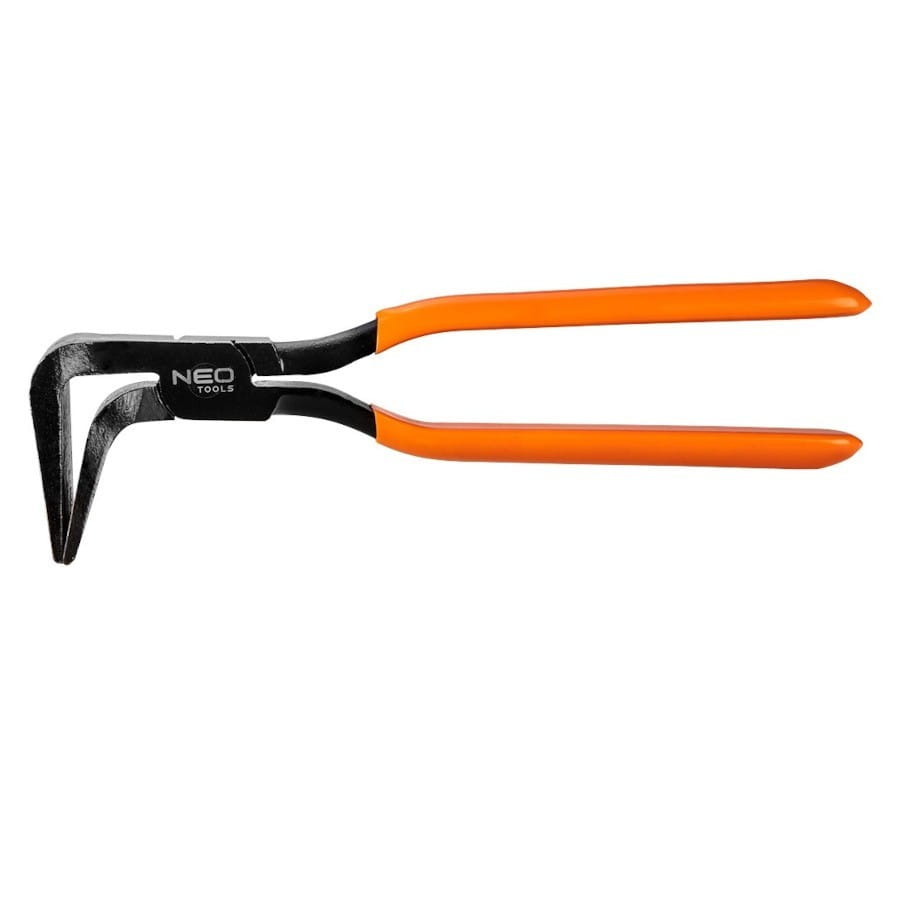 Cęgi dekarskie odgięte 90' NEO o długości 275 mm i szerokości szczęk 60 mm. Wykonane z wysokiej jakości stali chromowo-molibdenowej o twardości na poziomie 28-32 HRc, co zapewnia długą żywotność narzędzia. Pokrycie rękojeści okładziną PCV uniemożliwia wyślizgiwanie się z rąk, co poprawia komfort pracy.