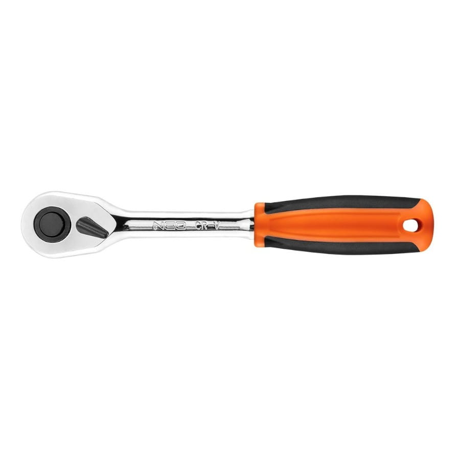 MARKA: NEO TOOLSGrzechotka 1/2" NEO (nr ref. 08-525) o długości 250 mm, z korpusem ze stali chromowo-wanadowej, wykonana zgodnie z normą DIN 3122.45-zębowy mechanizm zapadkowy wykonany jest z wyjątkowo trwałej stali chromowo-molibdenowej, przedłużającej żywotność narzędzia.Ergonomiczny uchwyt dwumateriałowy poprawia komfort pracy.Jakość narzędzia potwierdzona certyfikatem TÜV producenta.Marka NEO spełnia oczekiwania profesjonalistów.