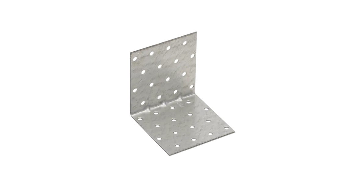 Zastosowanie: Standardowe kątowniki z uniwersalną perforacją. Ilość umieszczonych w nich otworów sprawia że za pomocą tych kątowników można zrealizować wiele prostych jak i skomplikowanych połączeń. Odpowiednio przemyślane przetłoczenia zwiększają ich wytrzymałość na zginanie dzięki czemu wykonane zostały z cieńszego materiału zachowując jednocześnie zbliżone parametry wytrzymałościowe. Materiał: DX51D + Z275. Grubość: 15mm. Mocowanie: Gwoździe pierścieniowe ANCHOR fi 4.