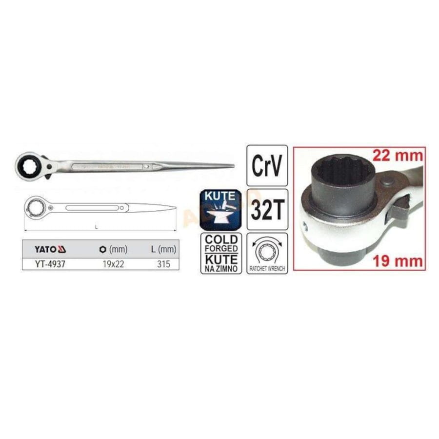 Klucz z grzechotką do rusztowań 19x22 YATO YT-4937