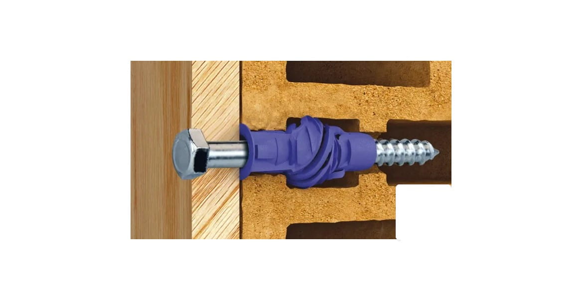 Skrzydełka antyrotacyjne wzmacniają przyczepność kołka w szerokim zakresie podłoży, w tym w miękkich podłożach murowych i w płycie gipsowo-kartonowej.