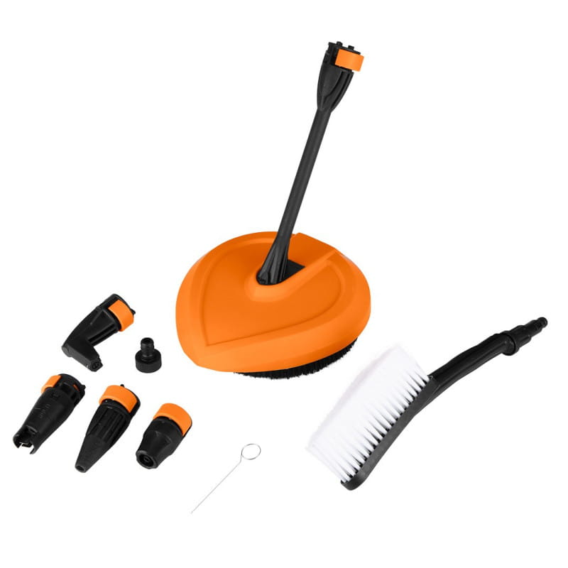 | Zestaw zawiera: | akcesoria: rękojeść pistoletowa, lanca z dyszą, końcówka TURBO, końcówka kątowa 90°, końcówka do mycia pianą, szczotka, szczotka do czyszczenia patio, wąż wysokociśnieniowy 8m na bębnie, uchwyty na wyposażenie, złącze wlotu wody z filtrem, igła do czyszcz |