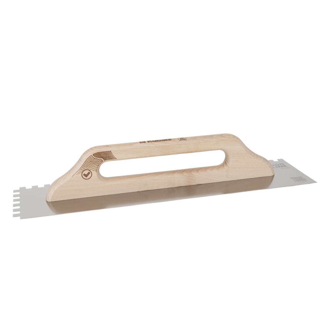 - Klasyczna paca z zębem i ergonomicznym uchwytem z naturalnego drewna bukowego.