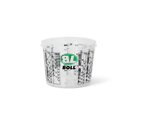 Uniwersalne pojemniki z  przeźroczystego tworzywa z nadrukowaną podziałką umożliwiającą przygotowanie mieszanki w żądanej proporcji.