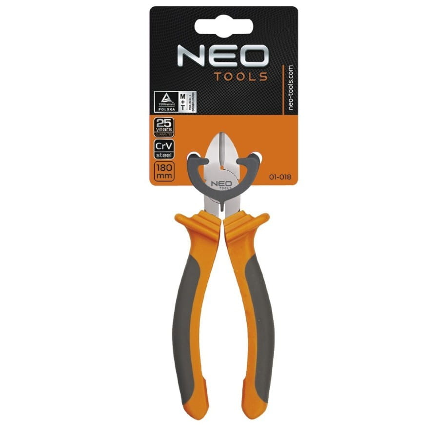 Szczypce boczne NEO (nr ref. 01-018) o wymiarze 180 mm, zgodne z normą DIN 5749. Wykonane z wysokiej jakości stali krawędzie tnące dodatkowo hartowane indukcyjnie (55-60 HRC) zapewniają skuteczne cięcie. Dwumateriałowa, ergonomiczna rękojeść podnosi komfort użytkowania. Jakość narzędzia potwierdzona certyfikatem TÜV i 25-letnią gwarancją producenta. Marka NEO spełnia oczekiwania profesjonalistów.