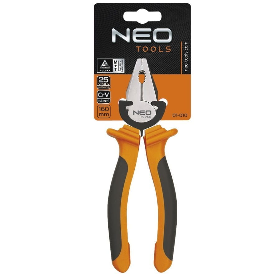 Szczypce uniwersalne NEO (nr ref. 01-010) o wymiarze 160 mm, wykonane zgodnie z normą DIN 5746. Szczęki z wysokiej jakości stali hartowane indukcyjnie (55-60 HRC) zapewniają skuteczne cięcie i kształtowanie twardych drutów. Dwumateriałowa, ergonomiczna rękojeść podnosi komfort użytkowania. Jakość narzędzia potwierdzona certyfikatem TÜV i 25-letnią gwarancją producenta. Marka NEO spełnia oczekiwania profesjonalistów.
