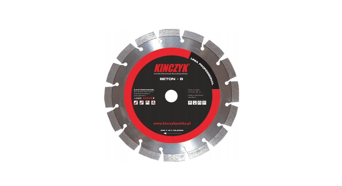 TARCZA KIŃCZYK BETON-B Professional przeznaczona do cięcia materiałów budowlanych na mokro i sucho.