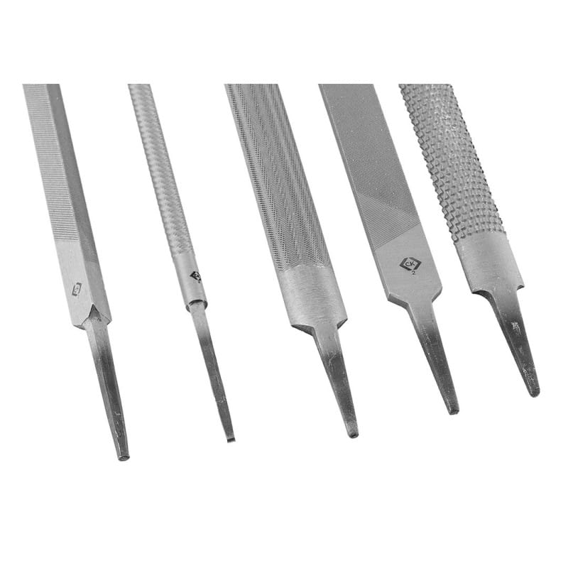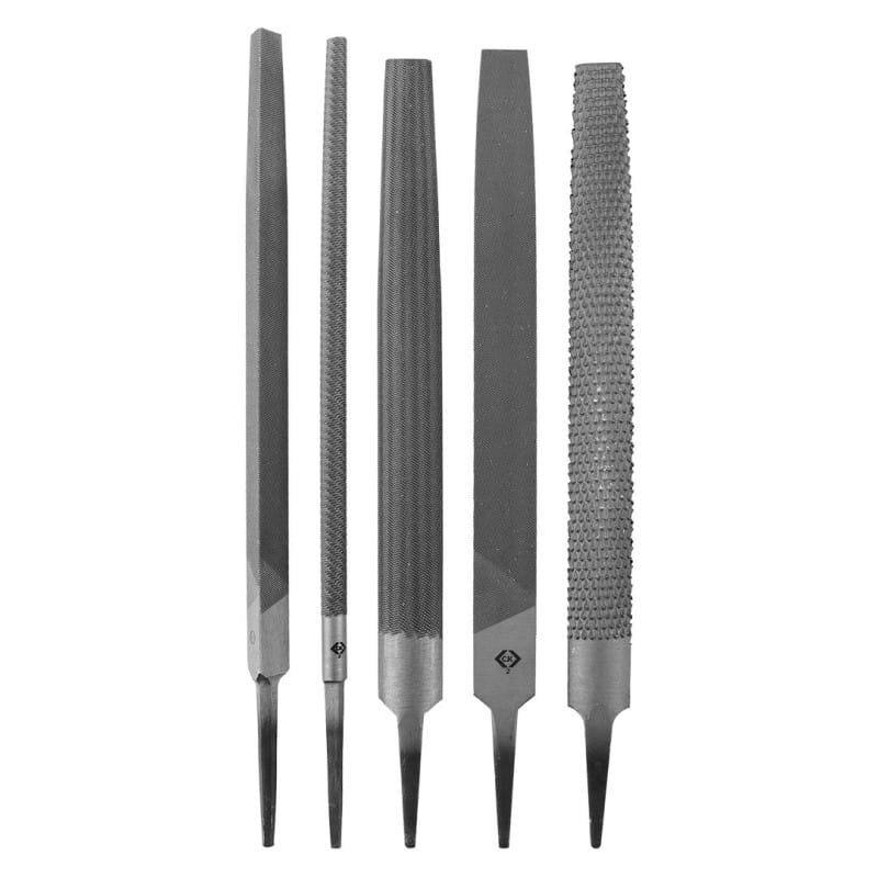| Zestaw zawiera: | pilniki, 5 szt.: do metalu: płaski, półokrągły, okrągły, trójkątny, do drewna: płaski |