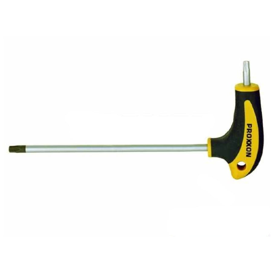 L-Griff - tam gdzie jest potrzeba uzyskania wysokich momentów obrotowych, np.: odkręcanie i zakręcanie śrub zaśniedziałych, swoje zastosowanie znajduje pokrętło L-Griff. Ergonomiczna, specjalnie zaprojektowana rękojeść ułatwia prace. Dwukomponentowa budowa pozwala na przenoszenie najwyższych momentów obrotowych. Łatwe do odczytu opisy na klindze oraz rękojeści.- krótka klinga to standardowy TX- długa klinga to TX z otworem TTX.PROXXON – dla profesjonalistów!Klucze i narzędzia ręczne PROXXON produkowane są w jednej z największy fabryk na świecie, z zachowaniem najnowszych technologii i najwyższych normy DIN/ISO. Siedziba PROXXON znajduje się w Niemczech, gdzie trwają ciągłe prace nad zwiększeniem wytrzymałości kluczy i nasadek, oraz nowej konstrukcji, która będzie mogła przenosić jeszcze większe siły, przy zachowaniu nienaruszonych krawędzi i kantów.Podstawowym składnikiem przy wyrobie wszystkich elementów jest stal CrV 31 CrV3 z wysoką zawartością związków węgla, dla zwiększenia twardości wykonywanych elementów. Serce każdego zestawu, czyli grzechotka wykonywana jest z jednolitego elementu (bez spawania) z dużą ilością zębów jednocześnie zazębiających się, umożliwiając przenoszenie ekstremalnych momentów.